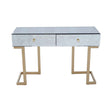 This two drawer console table comes in an exquisite design featuring a reflective antique mirror outer with hints of distressed effect. Each drawer has a brass finish square pull complemented with the sledge base.
