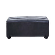 This Ottoman features genuine leather upholstery and an elegant distressed slate grey colour. The channel tufting lends depth and style to it. The feet are made from durable and eco friendly rubber wood.