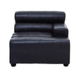 This left arm seat part of a modular sofa, features genuine leather upholstery and an elegant distressed slate grey colour. The channel tufting lends depth and style to the seat. The feet are made from durable and eco friendly wood.
