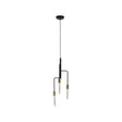 This pendant light has two tonal shades of matte black and luxe gold finish. The pendant has three arms, each with a tubular bulb featuring downward beam for ambient illumination.