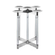 This sleek and reflective candelabra is made from smooth stainless steel and features on-trend acrylic elements. The silver colour produces a reflective finish. It has five round sconces that are perfect for displaying pillar candles.