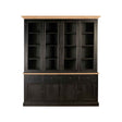 The stately piece boasts a deep black finish with contrasting whitewash trim and top, adding to the cabinet's visual intrigue. Inspired by traditional colonial design, the cabinet boasts an array of shelves, as well as two spacious cupboards and four drawers. Intricate metallic handles and simple carved detailing add decorative flares to this bold design piece.