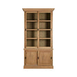 Intricately carved, this traditional style cabinet has four storage shelves complemented by sliding doors of wood and glass panel. The metallic handles on the sides of each door enable a firm grip for a smooth sliding function.
