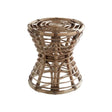 Exhibiting artisan craftsmanship, the round base and top of this stool are skilfully hand woven from thick stripes of natural grey rattan. The slimmer bands are wrapped neatly around the sides, featuring a pinched design.