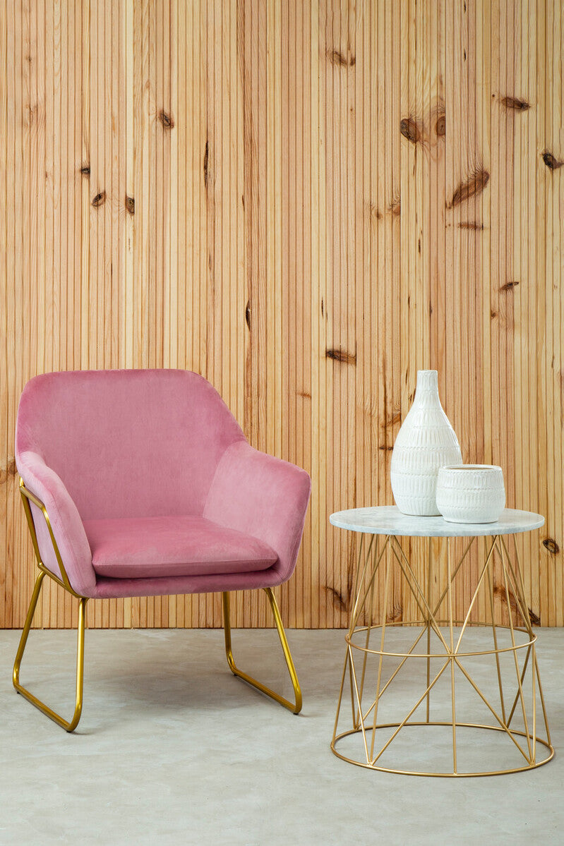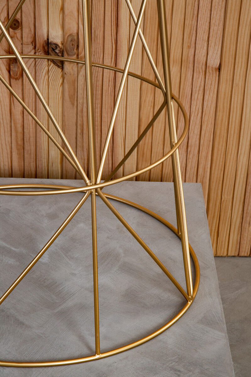 Big on the surface but small to the sight, this side table has a sleek, geometric cage like frame and merged clean lines, the round white marble top perfectly complements the gold powder coated iron base frame.