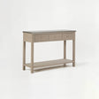 Made from durable yet lightweight fir wood, this console table has a distressed silver finish, while the decorative front with storage drawers showcases diamond-shaped knobs that add visual interest to the table's design. Place this modern console table against the living room and hallway wall for displaying decorative vases and sculptures. This console table is a perfect addition in modern interior settings.