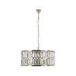Supported by a strong frame created from stainless steel, the chandelier boasts a muted nickel plating, harmonizing with the clear crystal glass. A simplistic criss-cross design adds a decorative geometric element to the chandelier's centre and counterpoints its rounded form.