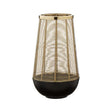 The lamp features a top in a sleek tapering iron wire cage design that gives it a captivating look. The rich gold finish is contrasted by the round black base which enhances visual appeal making it suitable for use as an accent piece.