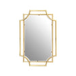 This wall mirror has an elegant shape with ornate angles and cutouts in brass effect creating a luxurious aesthetic. The mirrored glass adds a touch of more space complete with clean decorative detail.
