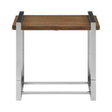 The rectangular top of Menteng side table is made from a single block of elm wood. Its rich grain and textured surface lends the piece a hint of exotic Indonesian design style. The wood top is supported by simple stainless steel legs, each one wrapping over the wood. Coordinate it with furniture made with natural materials in the living room.