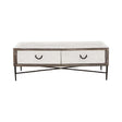 The coffee table combines modern elegance with rustic charm. Crafted from recycled elmwood in a dark mud grey finish, it features two textured drawers for ample storage. The antique iron legs add contrast and sophistication, enhancing its luxurious appeal in any space.