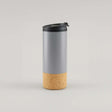 The 450ml bottle is made from durable stainless steel and has a double wall design. It has a tough PP lid with integrated drinking spout, and the cork base adds an organic finish to the cool grey colour.