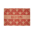 Its rectangular surface is finished in a rich bright red tone, with a contrasting geometric pattern. The abstract pattern features a "Welcome" lettering on it. This doormat is backed by PVC giving a slip-free grip on the floor.