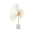 The Mirano spiral sculpture radiates luxury, boasting gold finish radial spokes atop a sleek white marble base with subtle variations. This elegant and enchanting piece is the perfect fit for contemporary interiors.
