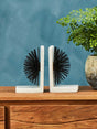 The Mirano Starburst Bookends boasts the iconic starburst design which is characterised by striking radial spokes in matt black which adds a contemporary element. Mounted onto white marble, this natural material may feature slight variations making each piece totally unique.