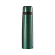 This vacuum flask has a matching cup in a bright turquoise finish that lends it a reflective, metallic look. An insulating storage vessel with double wall protection maintains drink temperature.