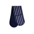 This double oven glove features a quilted rear surface with matching blue stitching, forming a geometric diamond pattern for added style. The glove is enhanced with a thick hem that coordinates with its outer trim, offering both durability and visual appeal. Designed for everyday use, it provides protection while cooking and is machine washable for easy maintenance.