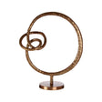 The Nexus metallic sculpture features a smooth round base contrasting the uneven, curling, knotted form of the sculpture above. Formed from aluminium it has a rough bronze finish lending a stylish accent to contemporary spaces.