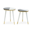 The Nirav set of two side tables are modern and edgy. Each table is half white marble and half black marble, perching on silver wood legs which has gold tips.