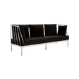 Made from strong steel, the frame of the Novo sofa boasts a cool silver finish, evoking a sense of luxury. The sleek metallic body is counterpointed by the plush black velvet that upholsters the seat and five cushions, resulting in a soft textured finish.