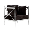 Created from strong steel, the frame of the Novo chair boasts a stylish silver finish, evoking a luxurious feel. The metallic body is counterpointed by the lush black velvet that upholsters the seat and three cushions, creating a soft textured finish.