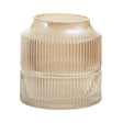 The Obskur small grey glass vase features intricate craftsmanship having a corrugated drum shaped body. The textured surface accentuates its curved profile and enhances style, making it suitable for both floral display and as an accent piece.