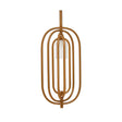 This pendant light has a glamorous gold finish metal body with oval shaped metal frames overlapping each other to encapsulate the bulb holder. The open and airy shape along with the frosted glass creates a sense of sophistication.