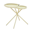 Distinctly modern in design, this side table features a gold finished abstract frame and two staggered, silver mirror plated tabletops of multiple sizes. Coordinating Oria furniture available.