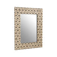 This eye-catching wall mirror boasts a natural and organic aesthetic. The seashells are carefully carved and arranged to create a stylish geometric pattern on a black resin frame. This combination of natural elements and modern design creates a visually intriguing wall mirror, resulting in a sophisticated and airy space.