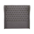 This headboard is constructed with straight lines, the silhouette is mid century modern as well as trendy. The grey fabric with deep button tufted fabric adds comfort whiles its wingback design makes it a piece to stand out alone.