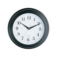 This wall clock has a vintage black frame featuring a classic design with black curling numbers on a white dial. Crafted with a textured casing, the wall clock will complement a variety of decors.