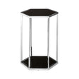The luxe style Piermount end table has a frame crafted from smooth, solid stainless steel. The frame has a hexagonal design and a reflective silver finish. Black marble is set into both top and bottom this table will complement any living space in your home.