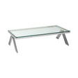 This rectangular coffee table is suited to luxe-style interior settings. Its angled legs are crafted from smooth stainless steel and have a reflective silver finish the clear glass top complements this sleek table