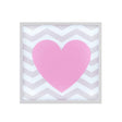 The translucent surface of the LED light box is decorated with a chevron pattern that becomes more prominent when the box is lit. A large pink heart is positioned over the pattern, adding to its decorative appeal.