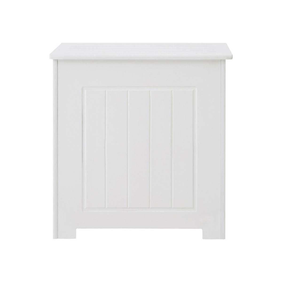 Bevelled detailing and panelling add to its visual appeal, while two cut-out handles makes it easy to lift. Lift its hinged lid to reveal ample storage space for towels and small accessories. Style it with the Portland mirrored cabinet.