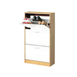 This stylish 3 drawer shoe cupboard is made from MDF, features a white and beautiful oak veneer finish. This stylish shoe cupboard is afantastic solution for organising and storage issues with th capacity to store up to 18 pairs of shoes.