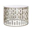 A mirrored glass top is neatly set into its rim and gives this table a reflective, glamorous appeal. Coordinate it with silver and gold contemporary luxe style lighting and accessories.