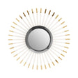 The concave glass brings a panoramic reflection and is bordered with a ring of sleek stainless steel. Clear acrylis stretches out from the steel, eack line tipped with reflective gold.