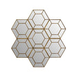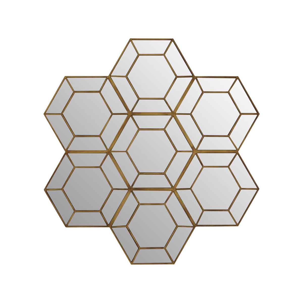 The seven hexagonal forms that are clustered together combine to create a reflective array. The sides of the mirror are finished in a warm gold colour, complementing the slim lines that house the individual mirrored panes on the surface of this contemporary piece. Coordinate this art deco-inspired piece with geometric lighting and textiles.
