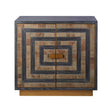 This sideboard exhibits a timeless flair that effortlessly goes well with a variety of decors. Made from recycled elm wood, the face of this sideboard features a textured surface with concentric rectangular patterns, while the cabinet sits atop a brass finish iron frame.