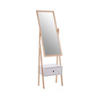 Inspired by contemporary design, this ladder standing mirror features a large drawer, ideal for cosmetics, hair accessories and more. Crafted from natural wood, this Rostok standing mirror is a perfect addition to a modern bedroom.