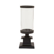 This candle holder with a cylindrical glass insert will hold a pillar candle in style. Finished in black color, the decorative column base supports the clear glass and matches its elegant and sleek rim.