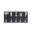 This five hook wall hanger is skilfully handcrafted from robust metal and rendered to different animal heads. The hanger hooks are neatly fixed on a black rectangular base and given a silver nickel finish to create an instant focal point on the wall.