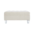The Suri sand velvet upholstered footstool which has clear acrylic feet adds a contemporary accent to this elegant inspired piece which will look good in any living space in your home.