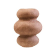 This sculptural bubble vase features a unique blend of cotton mache and coco shells, adding strength and texture. Recycled cloth remnants are processed into cotton mache, then infused with coco shell pieces. Skilled artisans shape and paint each piece by hand, resulting in unique variations that highlight its artisanal charm. The bubble design and neutral tones offer rustic charm to modern home decor.