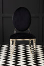 This elegant chair is sure to make a statement with its stainless steel frame in the polished silver finish which contributes to the luxe effect. Its black velvet seat and oval backrest complement the smooth, angular lines of the frame and form a monochrome contrast with it.