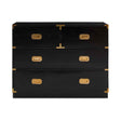 The Sarter black mango wood chest is a decadent addition to you decor. Four large drawers provide ample storage space, while the gold finishings elevate the chest.
