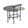 Featuring a geometric profile, this coffee table is constructed with a mix of marble, oak veneering and stainless steel curved top in a light black and brushed gold finish. Featuring straight intersecting lines, the base of this table provides support with style.