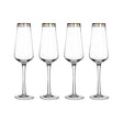 The tapered design of the Charleston champagne glasses ensures that their contents will stay fizzy for longer. Individually hand blown, each glass has beautiful silver and gold lines around the rim. Inspired by the decadence that underwrote the art deco period, these glasses are great for special occasions.