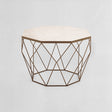 The Shalimar coffee table uses slender iron lines to create a contemporary crystalline structure. Its golden colour makes it suited to coordination with brass and copper accessories. The iron structure produces an octagonal shape at the top.